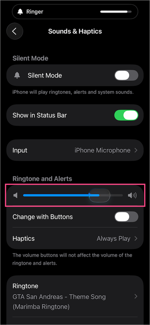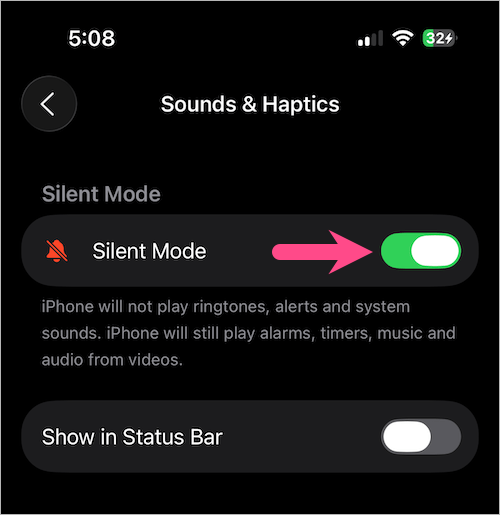 - 在頂部,打開開關靜音模式將您的 iPhone 靜音。