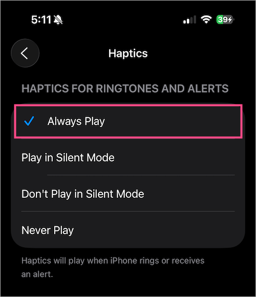 默認情況下,在響鈴和靜音模式下都會啟用振動,但您可以自定義此行為。