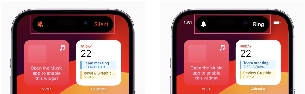 - 鈴聲音量狀態將顯示在動態島的正上方。