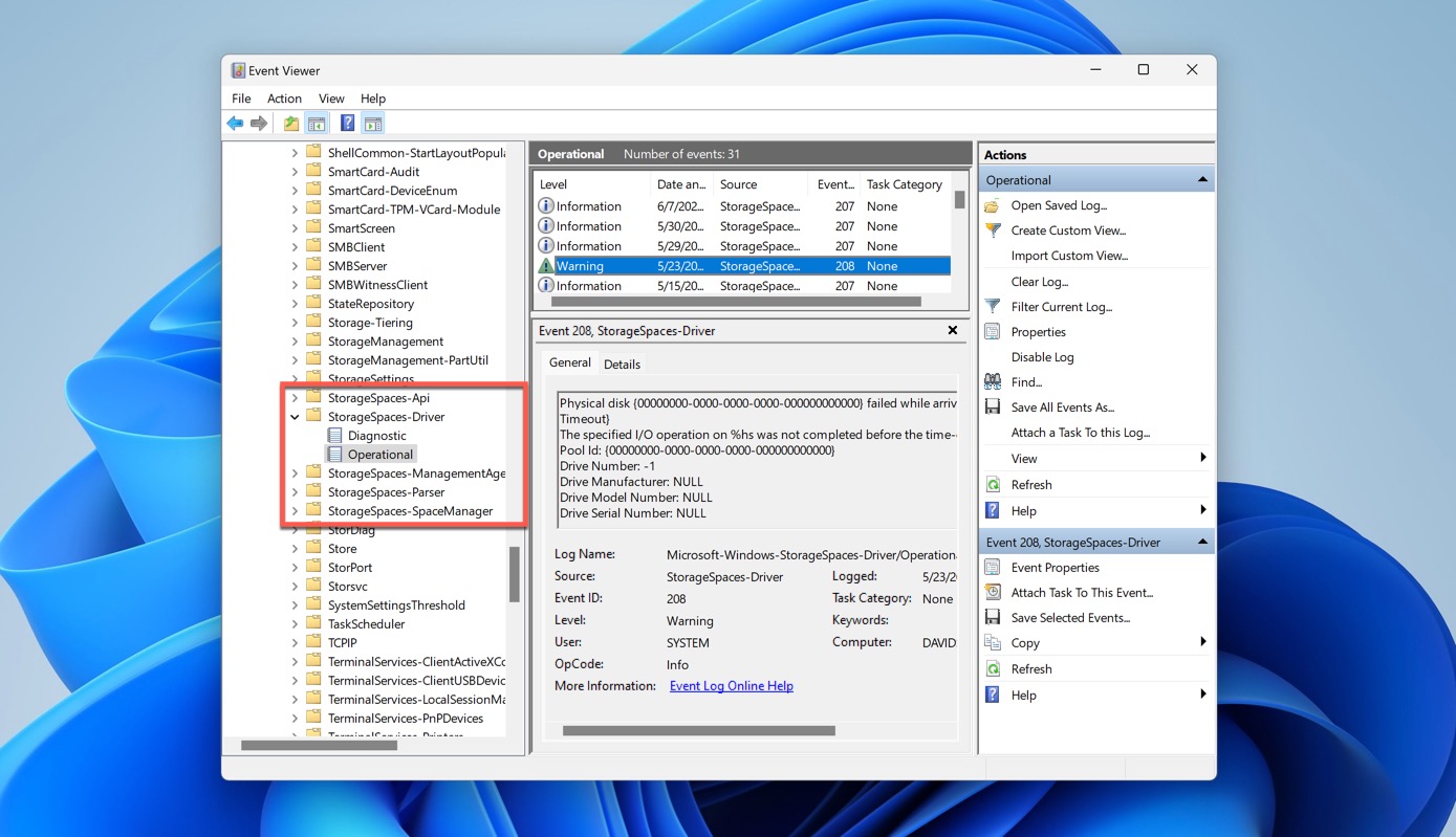 Windows具有用於此類偵探工作的內置工具:事件查看器。這是一個強大的實用程序,可以為與驅動器和存儲故障相關的錯誤提供重要的見解。因為活動查看器每天都會記錄數百個(即使不是數千個)的活動,因此很難找到您要尋找的東西,但是我們在這里為您提供幫助。