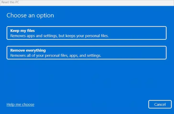 提供兩種恢復出廠設置的選項:“保留我的文件”和“刪除所有內容”。如果您選擇