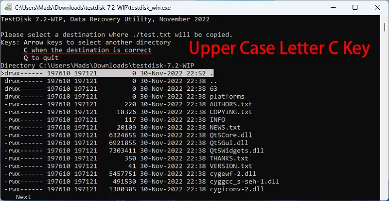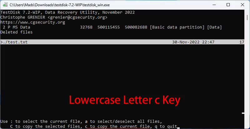 第9步:選擇您要恢復的文件,然後按小寫 c鑰匙。