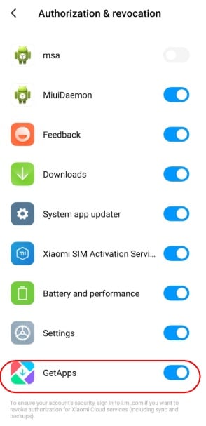 - 向下滾動並關閉“msa”選項旁邊的按鈕。小米一開始就不讓你這麼做,所以要不斷地撤銷授權,直到它最終讓你這樣做。
