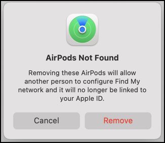 從這裡開始,您的 AirPods 將不再顯示在任何其他設備上。如果您想重新連接,則需要再次將它們配對,並且其他任何人現在都可以將它們添加到自己的“查找我的”網絡中。