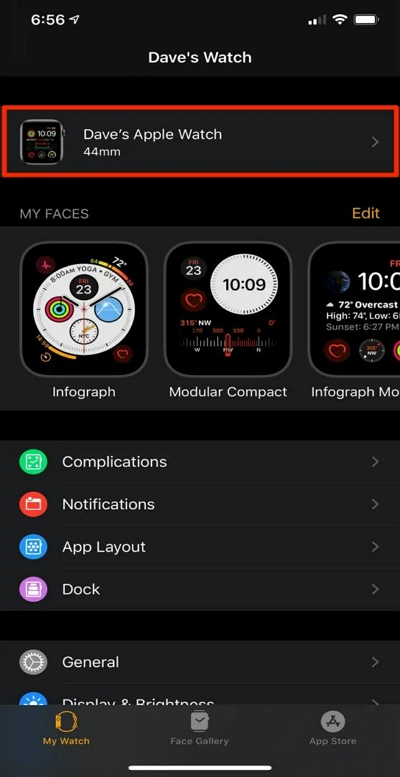 步驟一:將 Apple Watch 靠近 iPhone。然後,打開“手錶應用程序”並選擇“我的手錶”選項卡。