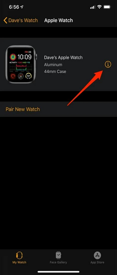 步驟3:點擊手錶名稱旁邊的“i”(信息)圖標。