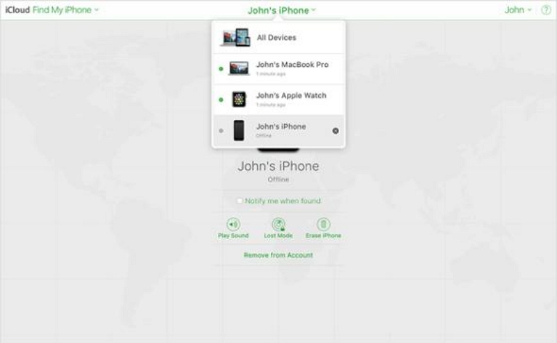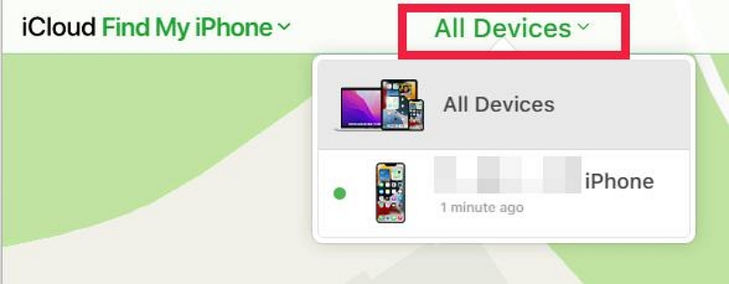 步驟2:單擊“查找我的”圖標並選擇“所有設備”。