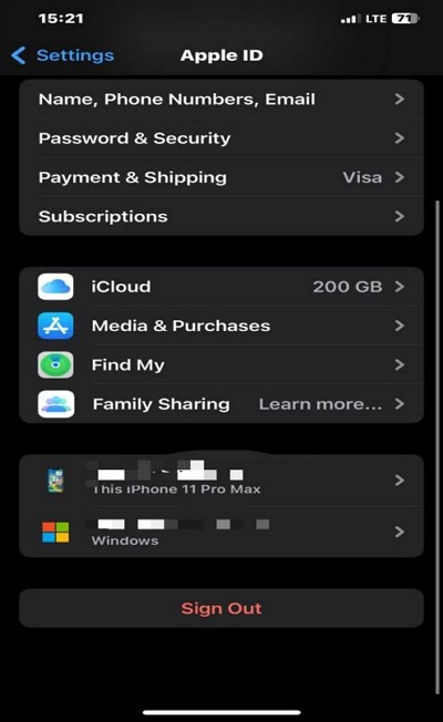 您還可以使用 iPhone 設置應用程序從 iPhone 中刪除 Apple ID。您只需先從設備中刪除 Apple ID,然後從 iPhone 上的 Apple ID 帳戶註銷即可。請參閱下面的操作步驟。
