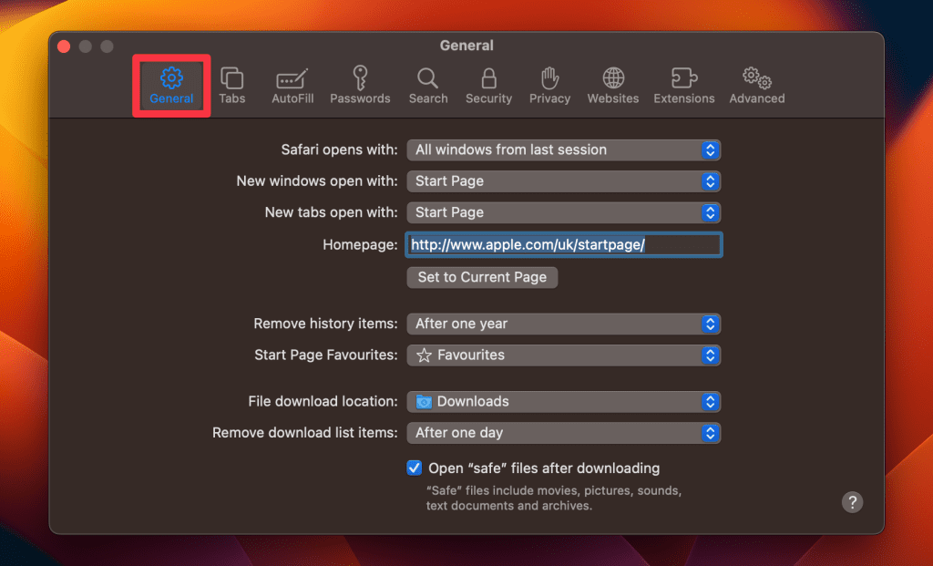 對於 Safari 用戶,以下是在 Mac 上修改主頁設置和刪除 Bing 重定向的方法: