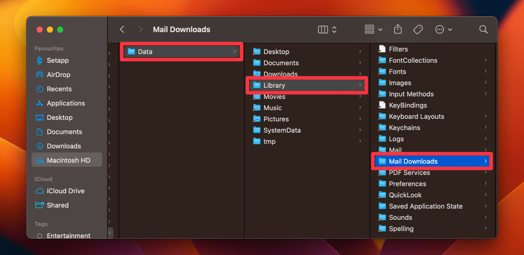 Apple Mail 的隱藏“郵件下載”文件夾存儲附件,再次保存時會創建重複項。清除此文件夾中的重複項以避免混亂。方法如下: