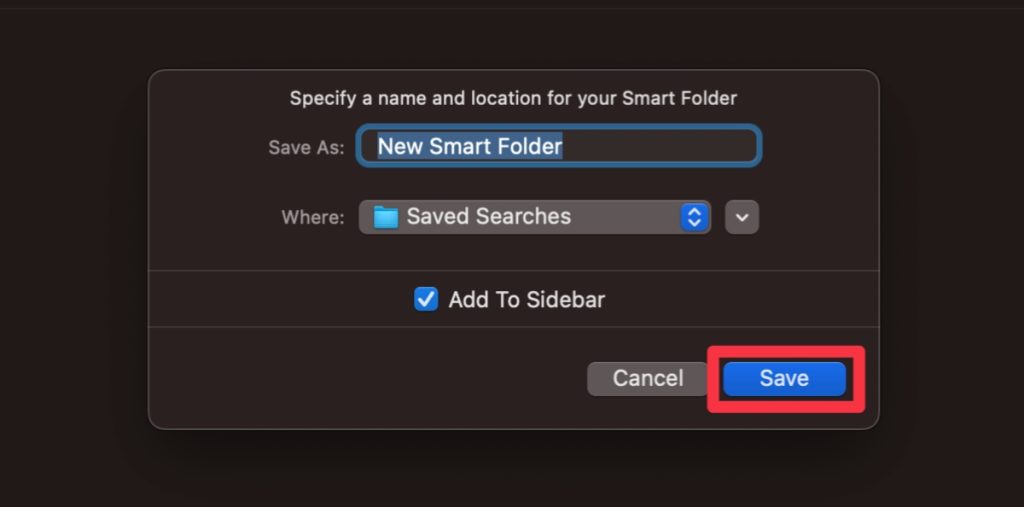 - 指定智能文件夾的名稱和位置,然後點擊節省按鈕。