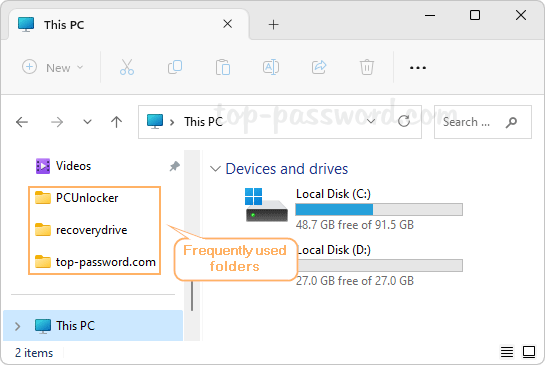 方法 1:在 Windows 11 中手動刪除常用文件夾