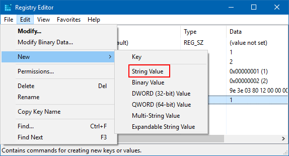 第 4 步:在外殼圖標子項,創建一個新的字符串值並命名29。