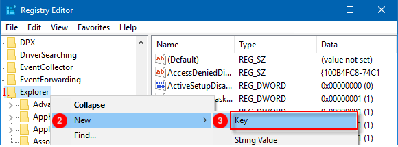 右鍵單擊探險家, 選擇新的>鑰匙,然後給它一個名字外殼圖標。
