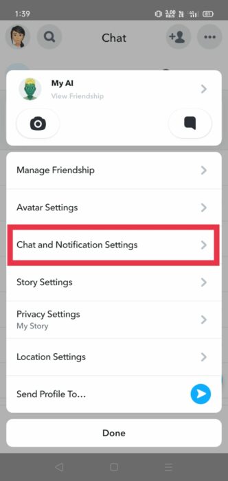 按照與從設置中刪除 Snapchat AI 機器人類似的步驟(最多第 3 步)從“我的 AI”中清除數據。