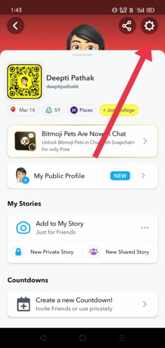 - 打開 Snapchat:Snapchat 打開後,點擊屏幕左上角的 Bitmoji 或個人資料圖片即可訪問設置。