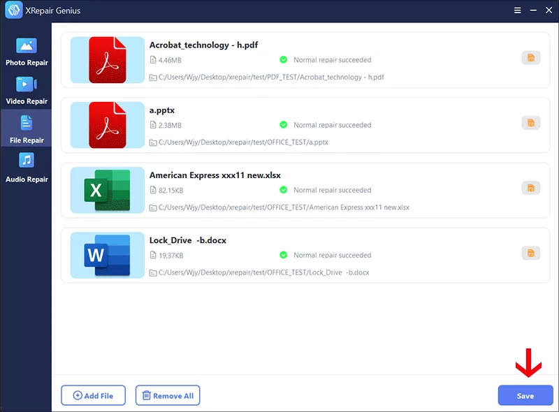 步驟3:很快,修復過程就結束了。您可以單擊節省按鈕將所有已修復的文件保存在計算機上。