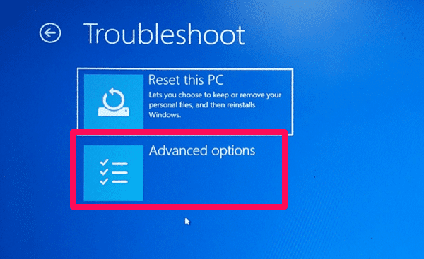 - 現在,在啟動屏幕上,選擇故障排除選項。