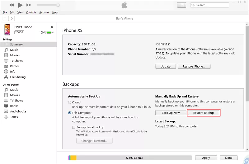 方法 2:從 iTunes 備份解鎖 iPhone 密碼