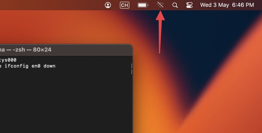 - 要關閉 Wi-Fi,請鍵入以下命令並按進入: