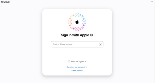 步驟一:訪問 iCloud 官方網站。輸入您的 Apple ID 詳細信息以登錄您的個人資料。