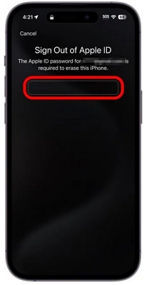 第5步:輸入您的 Apple ID 密碼以退出 Apple ID。
