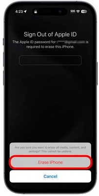 如果您的 iPhone 運行 iOS 15.2 或更高版本,已連接到互聯網,並且您記得當前在設備上登錄的 Apple ID 密碼,您可以先使用此方法刪除屏幕密碼。之後,您可以恢復 iCloud 備份並設置新密碼。此過程可以直接在鎖定的 iPhone 上完成,這使其成為沒有其他設備可用時的便捷選擇。