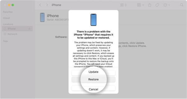 步驟2:接下來,iTunes/Finder 將發現處於恢復模式的 iPhone,然後顯示一個窗口,提醒您需要恢復或更新您的 iPhone。點擊好的繼續。
