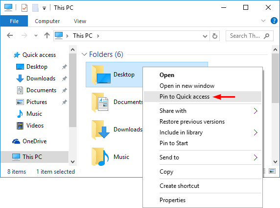 打開文件資源管理器。現在選擇要固定到快速訪問的文件夾、庫甚至驅動器。右鍵單擊它並選擇“固定到快速訪問” 從上下文菜單中。