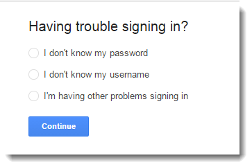 如果用戶忘記用戶名或密碼,或者用戶在登錄時遇到其他問題,Google 會為用戶提供多種返回 Google 帳戶的選項。