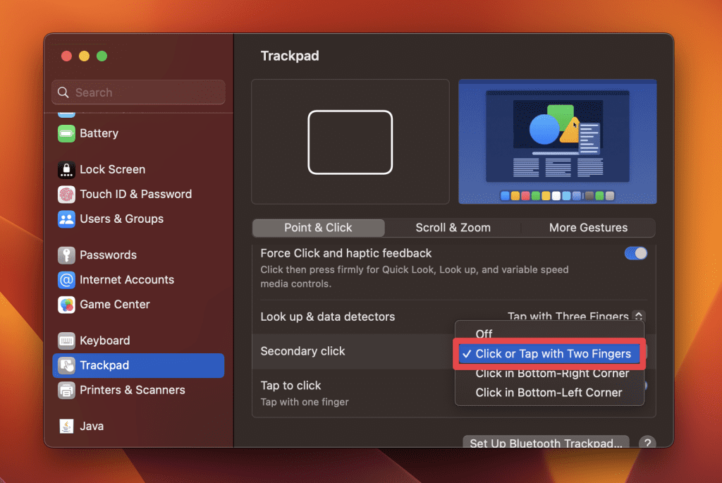 在 Mac 上使用觸控板右鍵單擊是一個方便的選項,特別是如果您更喜歡手勢而不是按鈕。要在 Mac 上使用觸控板右鍵單擊,請按照以下步驟操作: