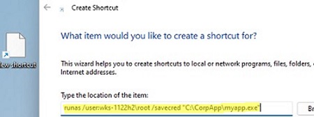runas /user:wks-123root /savecred "C:CorpAppmyapp.exe"