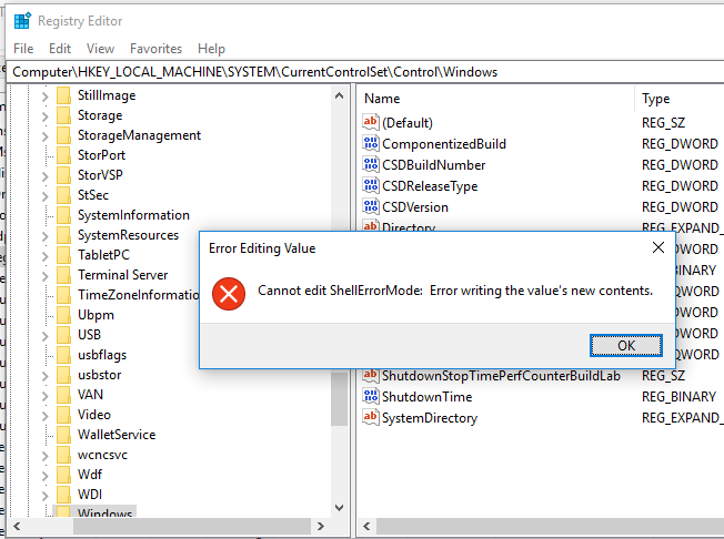 嘗試編輯 HKEY_LOCAL_MACHINE 註冊表配置單元下的任何項目。如您所見,用戶無法編輯此註冊表項中的項目(用戶沒有系統註冊表項的寫入權限)。但是,您可以在用戶配置單元 (HKEY_CURRENT_USER) 中添加或編輯註冊表項和參數。