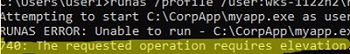RUNAS ERROR: Unable to run - C:CorpAppmyapp.exe 740: The requested operation requires elevation.