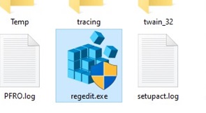 讓我們以註冊表編輯器為例——註冊表編輯器(它位於 C:Windows 文件夾中)。請注意應用程序圖標旁邊的 UAC 盾牌。此圖標表示需要 UAC 提升才能運行此應用程序。