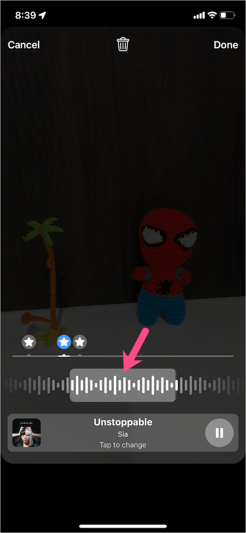 - 按住並拖動滑塊可為您的捲軸選擇音頻剪輯的突出顯示部分。提示:點擊滑塊上的“星星”以添加歌曲中最受歡迎的部分。
