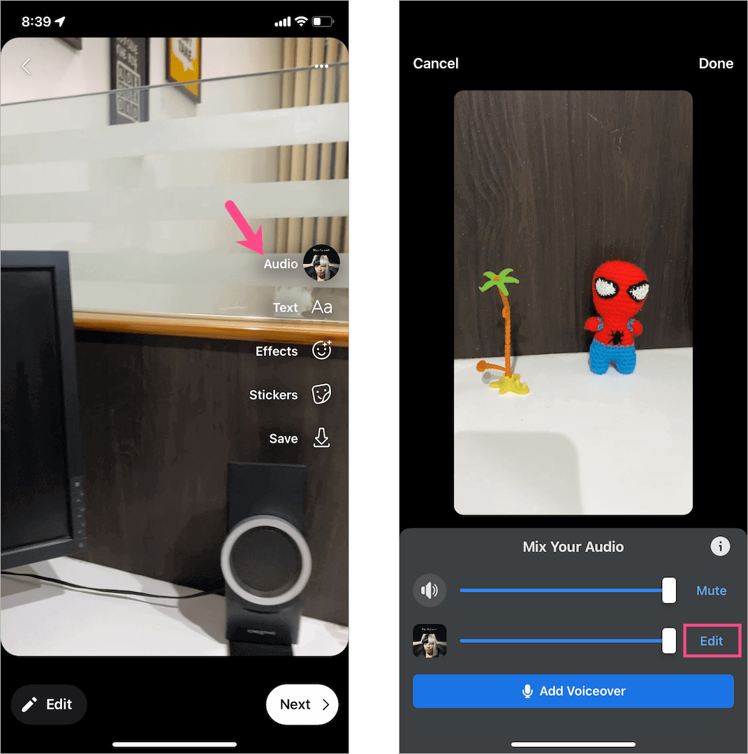 唯一的缺點是您無法訪問 Facebook 上的 Instagram 保存的音頻庫來選擇保存的音樂曲目之一。