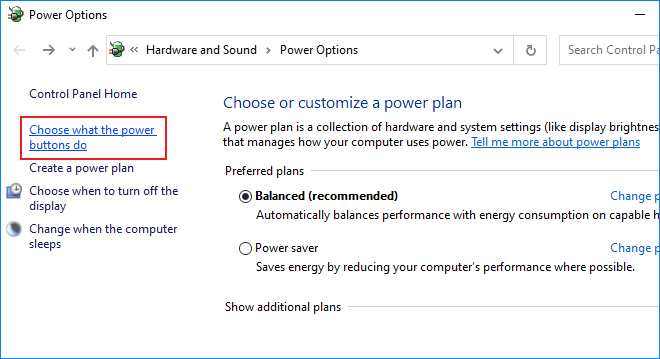 步驟7:單擊選擇電源按鈕的操作。