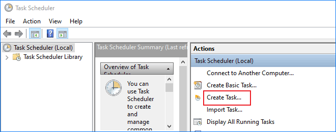 步驟2:打開任務調度程序後,單擊創建任務…在右側窗格中。