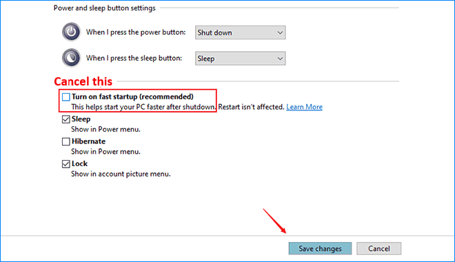 步驟9:取消檢查打開快速啟動選項,然後單擊保存更改。