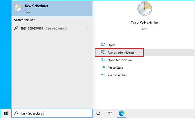 步驟1:搜索任務調度程序,然後單擊作為管理員運行從結果。