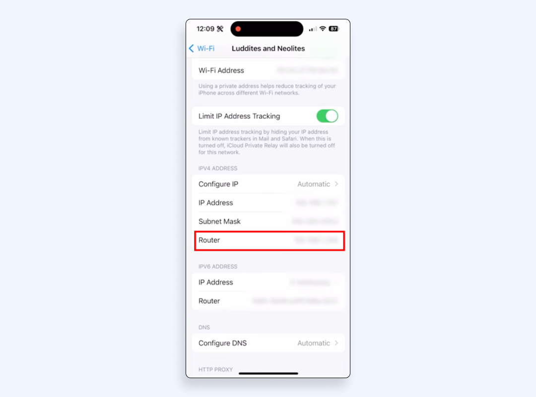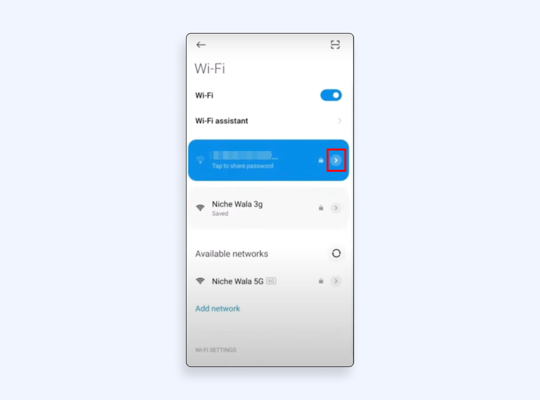 3. 點擊已連接的 Wi-Fi 網絡旁邊的 ⓘ(信息圖標)