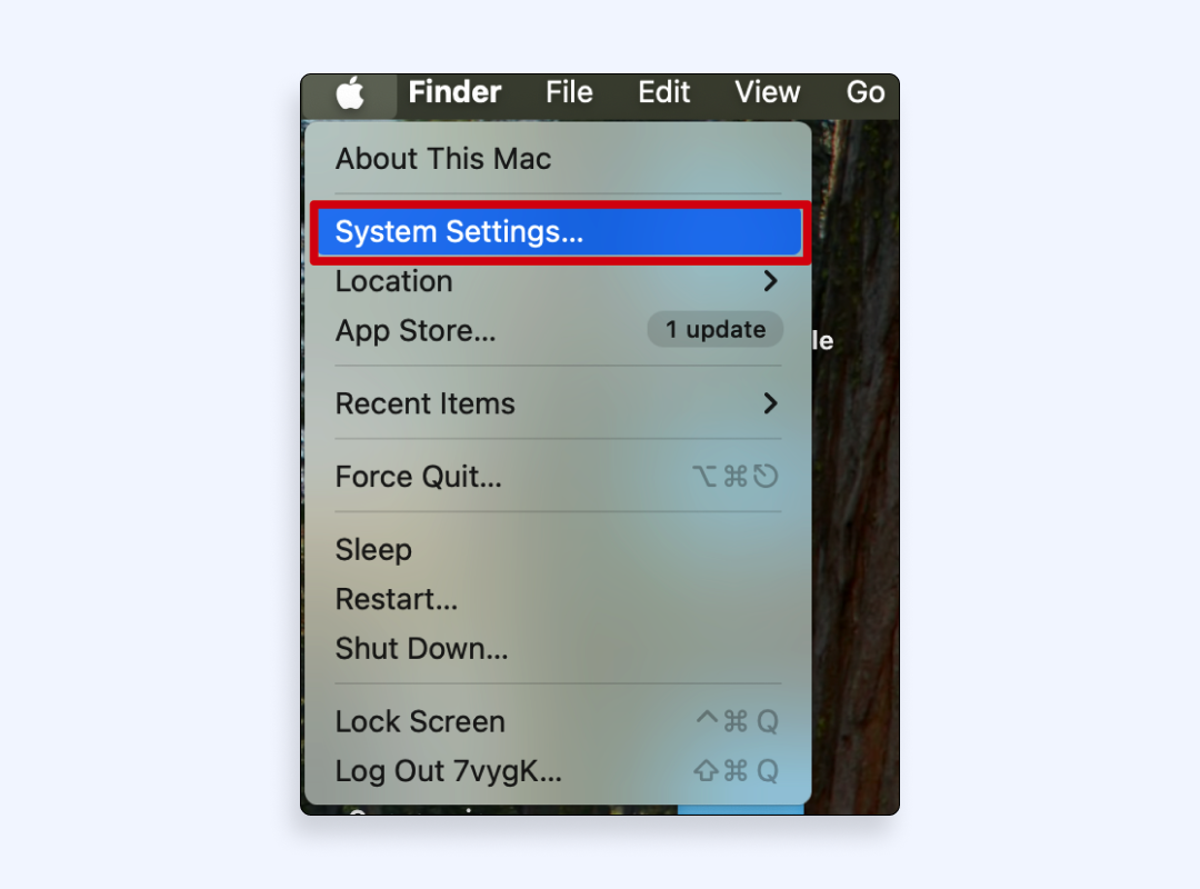 - 單擊屏幕左上角的 Apple 菜單,然後選擇系統設置。