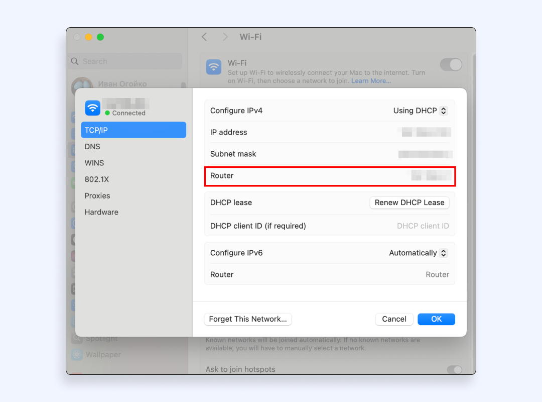 - 轉到 TCP/IP 選項卡並查找路由器 - 它旁邊的數字是路由器的 IP 地址。複製它。
