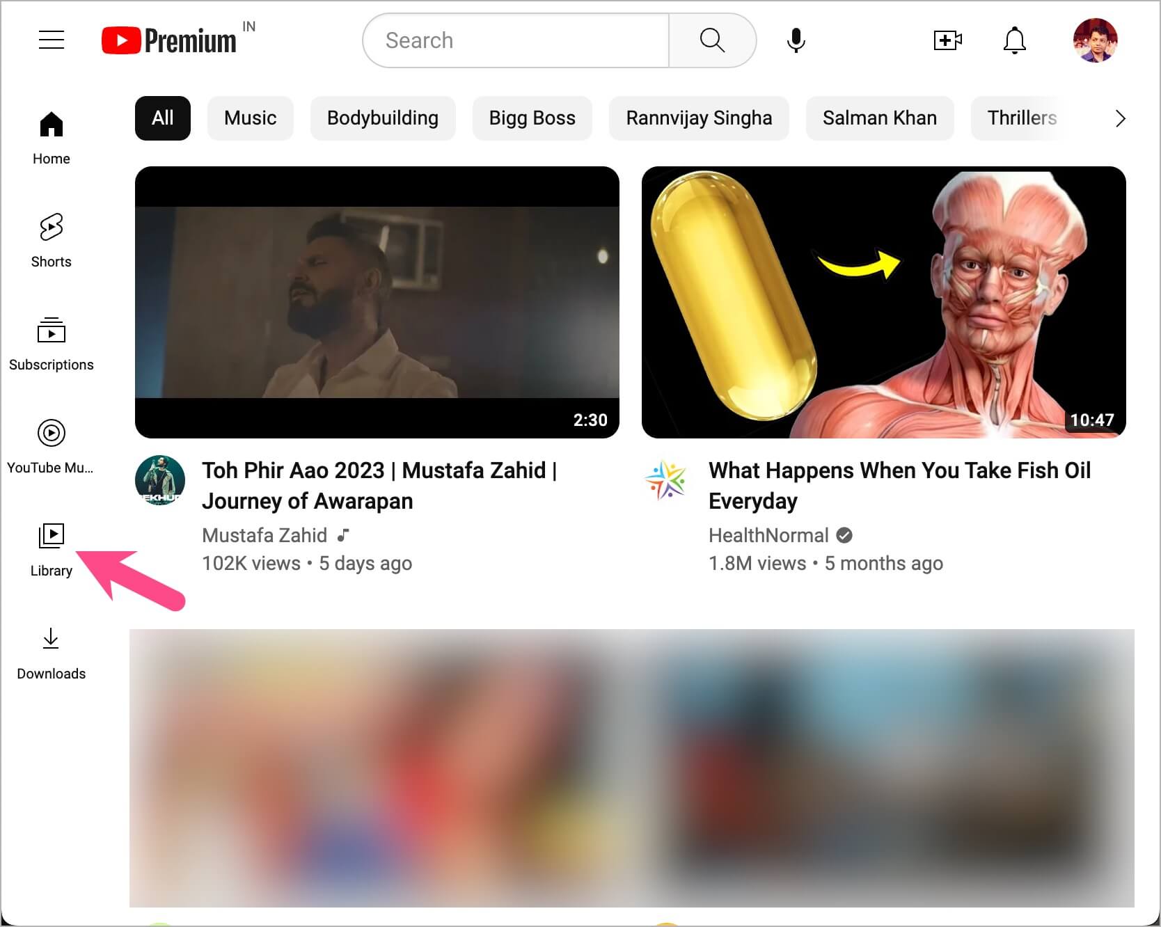 - 單擊“你' 或者 '圖書館' 側邊欄中的選項卡。