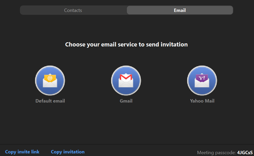 是的,您可以在 Zoom 中開始即時會議,然後單擊“邀請”通過電子郵件、聯繫人或聊天應用程序發送會議鏈接。
