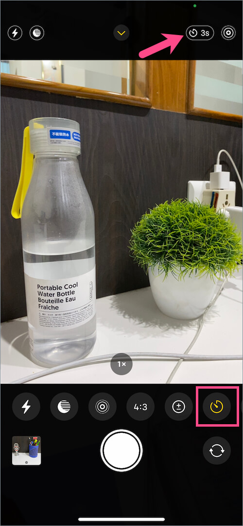 - 啟用定時器後,所選的延遲時間將顯示在相機 UI 的右上角。