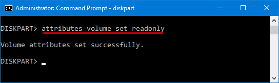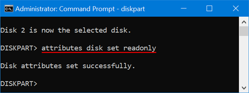- 要將您選擇的磁盤設置為只讀,請鍵入屬性磁盤設置為只讀並按 Enter 鍵。