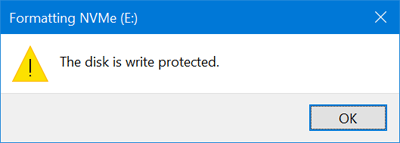 - 現在,您將無法刪除或修改該卷上的文件。當您嘗試格式化該卷時,您會收到錯誤“磁盤已寫保護”。