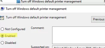 然後使用GPO選項禁用Windows中的自動打印機分配關閉Windows默認打印機管理(用戶配置 - >管理模板 - >控制面板 - >打印機)。